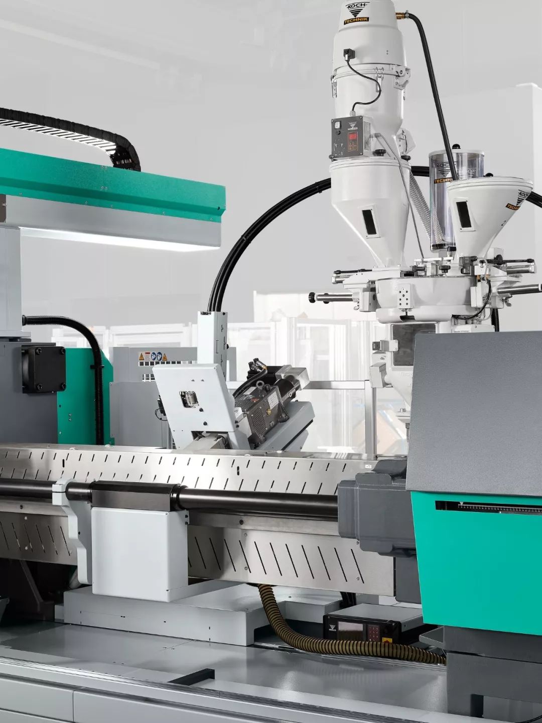 固定在注射單元上的FDC 裝置包括集成了切割裝置的側(cè)喂料器、一個(gè)適配的氣缸和一種特殊的螺桿結(jié)構(gòu)。