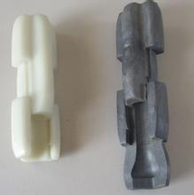 改性尼龍通過(guò)對(duì)燒結(jié)件的測(cè)試得出:改性后的復(fù)合尼龍粉燒結(jié)成型件變形小、成型性能良好;拉伸強(qiáng)度為45.2MPa,延伸率為7%,彎曲強(qiáng)度56.5MPa。滿足指標(biāo)(成型件拉伸強(qiáng)度≥40MPa,延伸率≥7%)要求。與以往試驗(yàn)相比本次試驗(yàn)是成功的。不僅使燒結(jié)件的強(qiáng)度提高了而且延伸率也降低了。